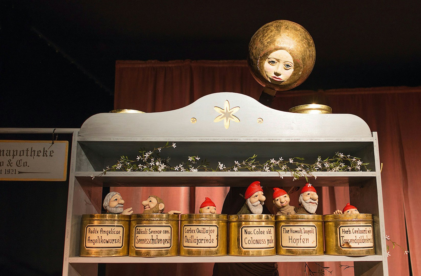 Ein einsames Mädchen mit Teint so weiss wie Schnee, Lippen so rot wie Blut und Haaren so schwarz wie Ebenholz. Ein sprechender Spiegel und eine von Neid besessene Stiefmutter. Das sind die Zutaten eines der berühmtesten und beliebtesten Märchen der Brüder Grimm. Hinzu kommt noch ein schöner Prinz, sieben verzückte, verrückte Zwerge, eine Prise Magie, ein grosser Schuss Freundschaft und ein vergifteter Apfel. Genau diese Ingredienzen sind in einem kleinen Kästchen der Märchenapotheke «Pacco & Co.» ausgestellt, in der so mancher Kunde schon «Einmal Schneewittchen, bitte» bestellt hat. Umso überraschender, was die Berliner Puppenspielerin Anna Wagner-Fregin aus den typischen Schneewittchen-Zutaten macht. Die Prinzessin zieht Fussball dem Tanzball vor, der Prinz spricht stets in leicht pathetischen Reimen, die sieben Zwerge hingegen in sieben verschiedenen Dialekten, und der eigentliche Held der Geschichte und Happy End-Garant ist ein Hund namens Pacco.